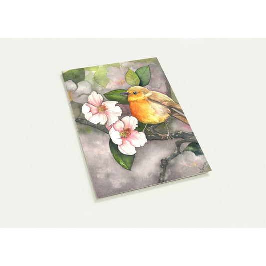 Robin and Pink Magnolias - Pack of 10 Greeting Cards with Envelopes