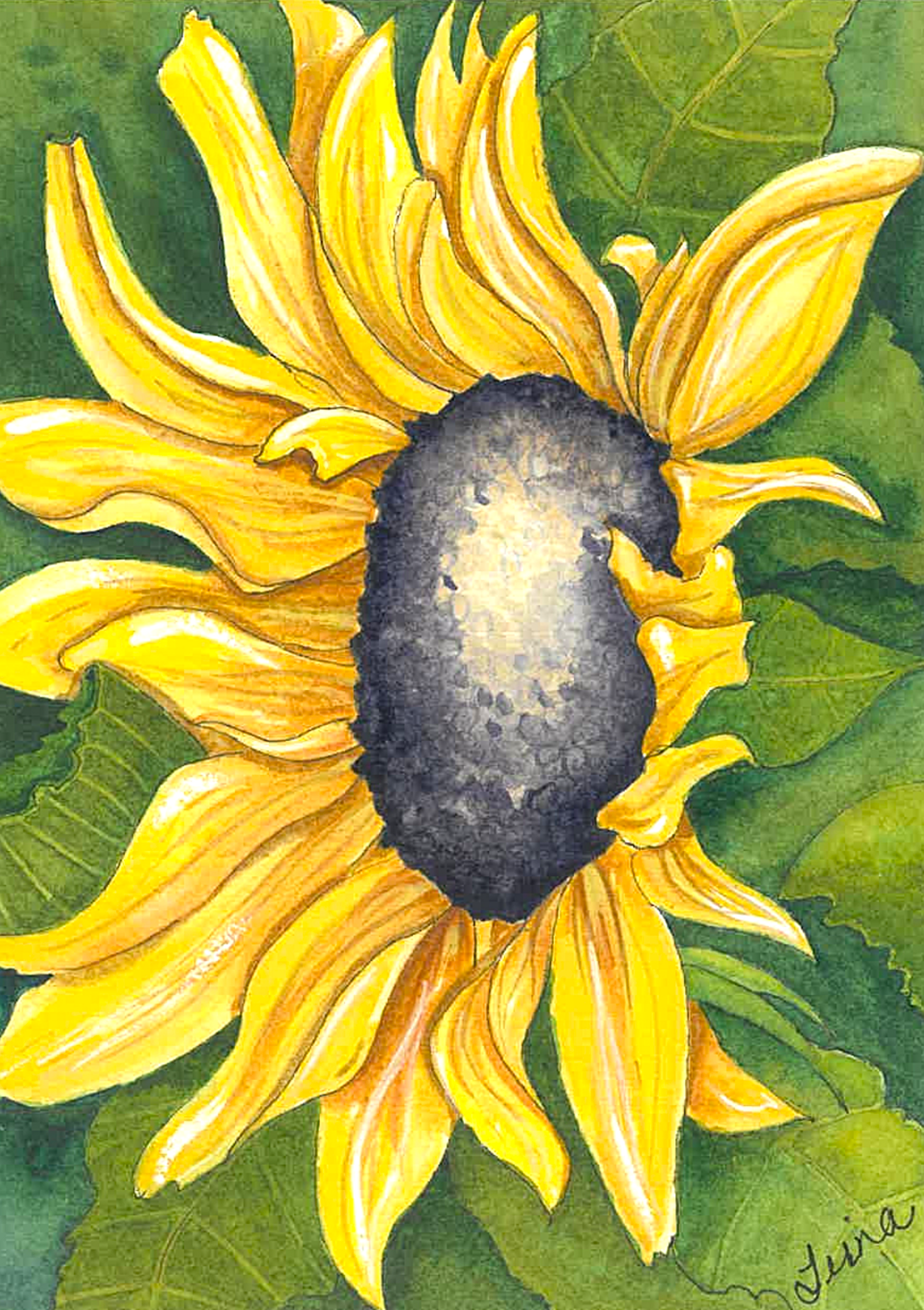 Size 8" x 10" This beautiful little Sunflower is part of my newest collection: Vintage Bolds. She is painted with bold yellows, golds and greens.